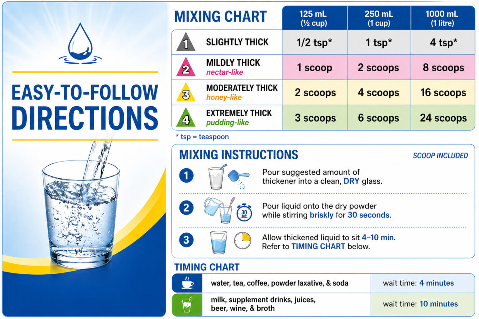Simple scoop dosing, quick mixing, consistent results
