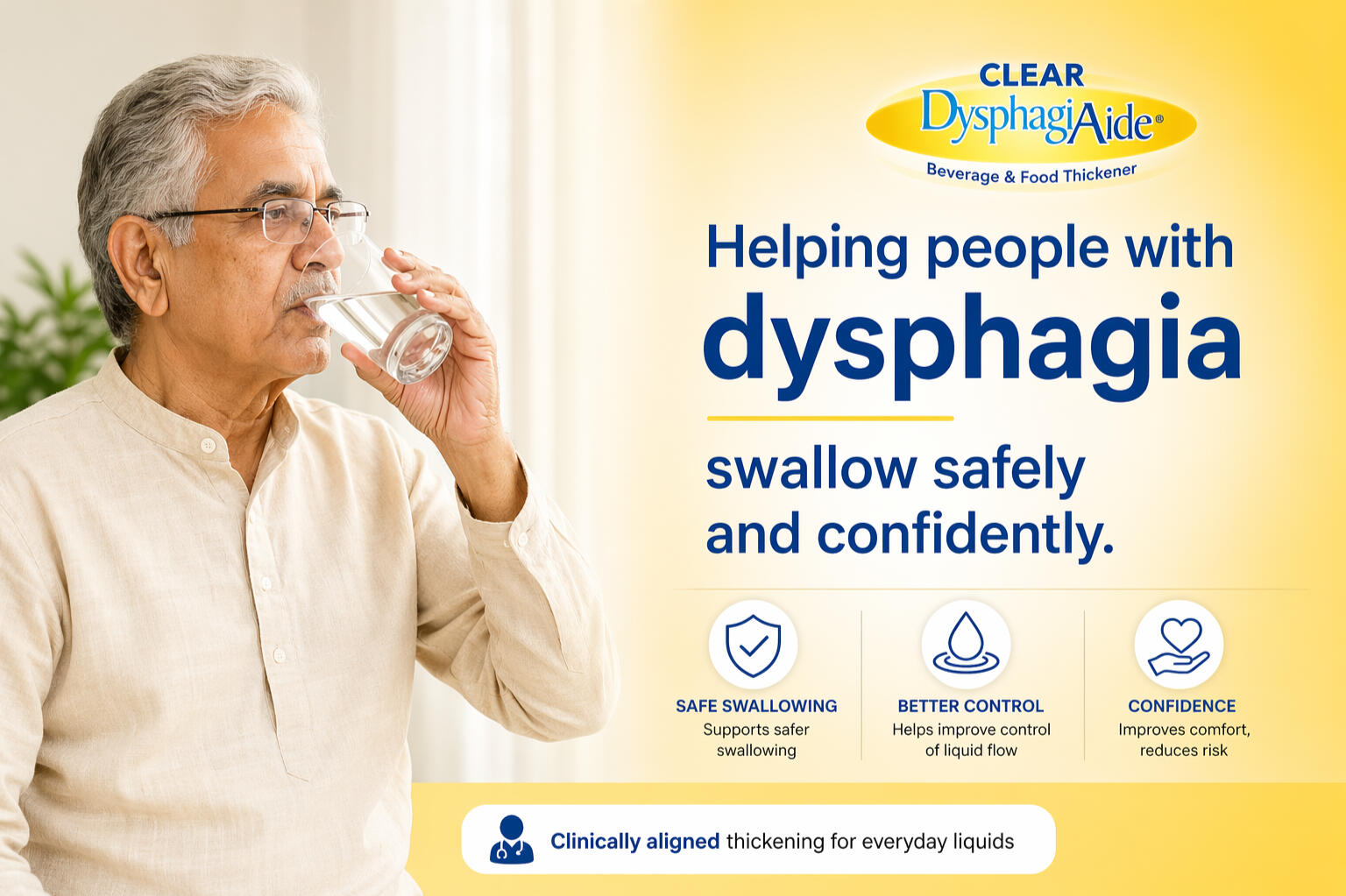 Mealtimes should bring comfort, not worry. Dysphagiaide helps Indian caregivers gently thicken drinks and soft foods - always under guidance of a doctor or Speech Language Pathologist.